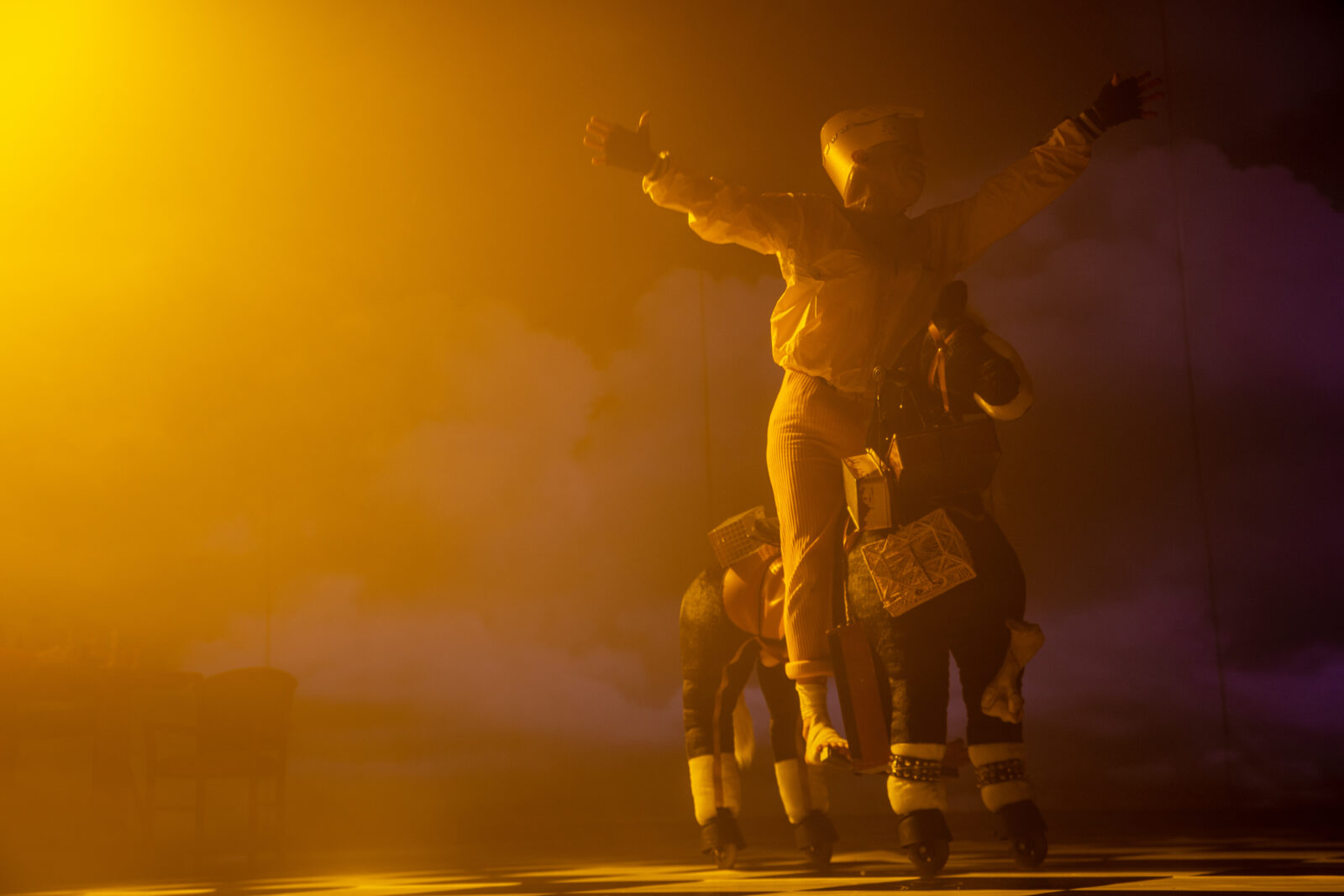 Alice de l’autre côté est un rendez-vous théâtral qui est d’abord celui de toute l’équipe artistique avec ce village particulier qu’est un EHPAD. Pour nous ce fut celui de Lanmeur (Finistère). Nous avons choisi l’immersion comme mode opératoire : il s’agissait de générer de la fiction, pour nous, mais aussi et surtout pour les résident·e·s et professionnel·le·s de l’EHPAD. C’est un personnage directement sorti du texte de Carroll qui fut « l’invité » de cette institution. En mascotte déroutante il a su contredire beaucoup de poncifs sur cet endroit qui semble déjà nous attendre…