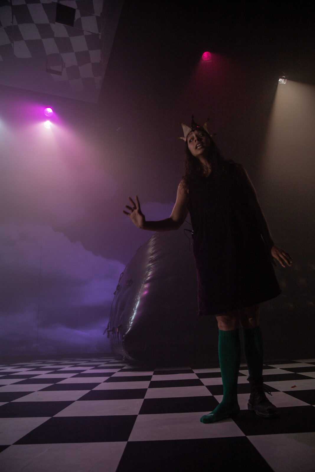Nous avons alors choisi de bâtir une variation autour du texte de Lewis Carroll. Écriture de plateau délicate, cherchant à déstabiliser quelque chose au cœur d’un modèle de la littérature enfantine – modèle qui s’impose lorsque nous pensons à Alice. Par glissements échiquéens successifs, Alice va rencontrer six vieux tirant vers le monstrueux, qui lui livreront un trousseau de clefs ambiguës pour des portes qu’elle seule pourra ouvrir. Six vieux missionnés pour faire perdre à Alice la sensation de la personne qu’elle est.