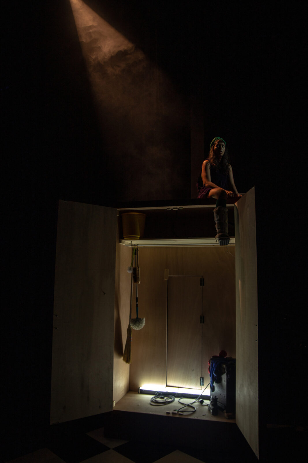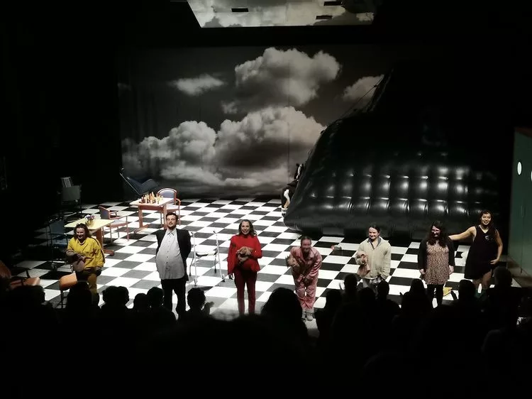 Entre autres phénomènes décisifs : la langue. Lieu du dilemme par excellence, Alice se met en quête d’indices pour trouver des solutions. Car c’est bien dans la langue elle-même que quelque chose semble se passer. Cette série de dérapages sémantiques font saisir à la jeune femme qu’elle est bel et bien sous l’influence de quelque chose qui lui fait faire ce qu’elle fait. Elle est le seul personnage, les autres, les vieux, sont des acteurs et des actrices : un balancement entre « être » et « jouer à être » fait lentement entrer le théâtre en scène, comme un cadeau qu’on ne peut refuser. Apparaît alors l’opportunité pour nous tous de sortir du théâtre par le théâtre.