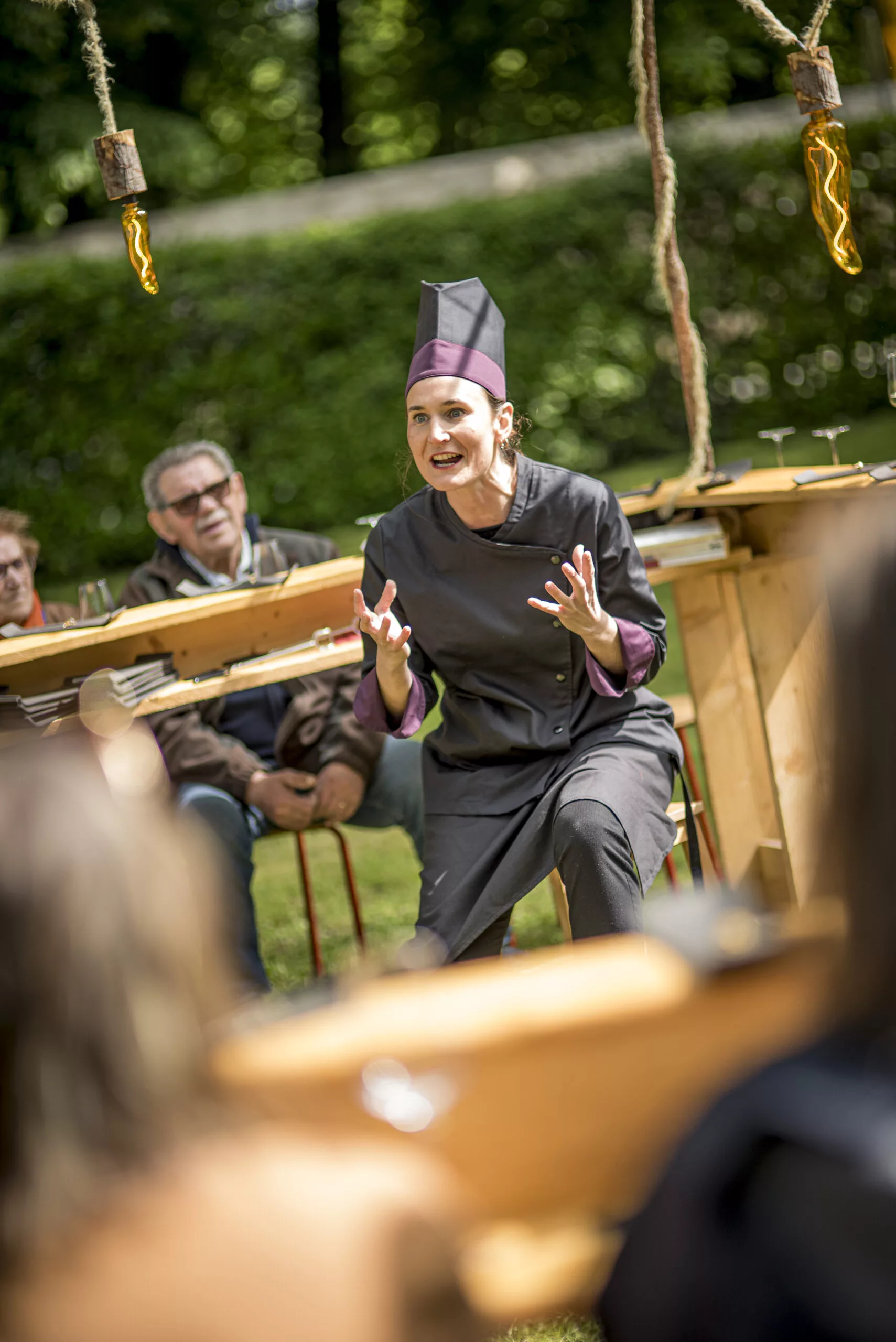 « Les premiers verres se remplissent. On trinque avec son voisin, que l’on ne connaît pas forcément. Les hôtesses cuisinent quelques mets, récitent des textes de Roland Dubillard, de Lydie Salvayre, de Pascal Quignard, de Pierre Choderlos de Laclos et d’Anaïs Nin. Elles associent le plaisir de la langue et celui des mots, jouant avec la saveur érotique de ce moment léger et euphorique. »